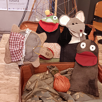Pupazzi e scenografie sono stati realizzati con iuta, stoffe e materiali di riciclo, adatti all’utilizzo anche da parte dei bambini alla fine della rappresentazione.